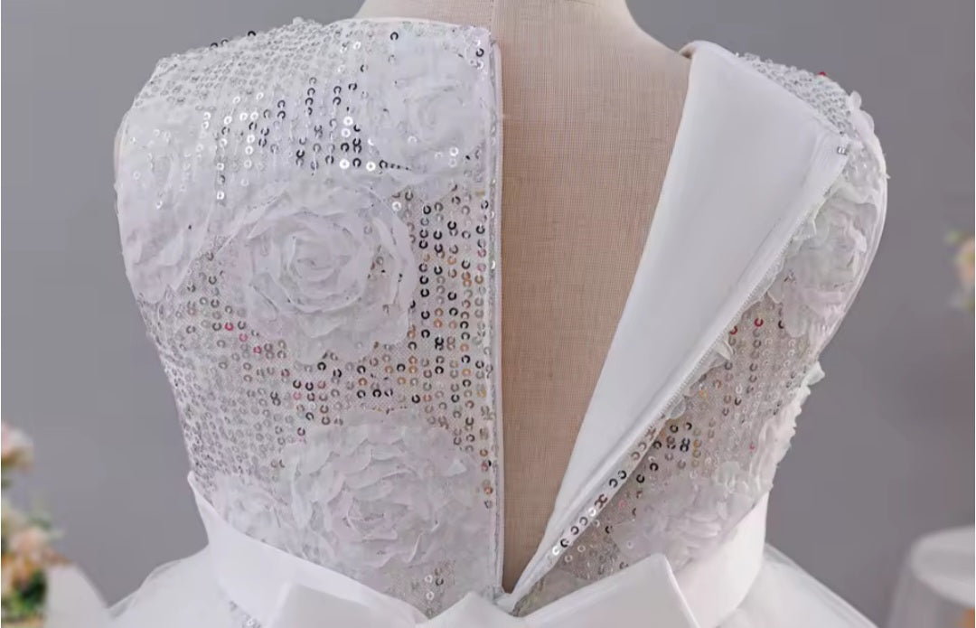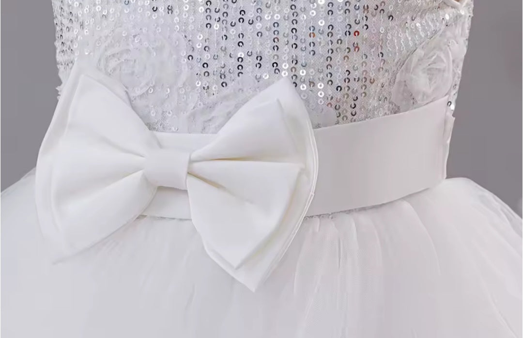 White Sequin Tiered Dress (2-10 Yrs)